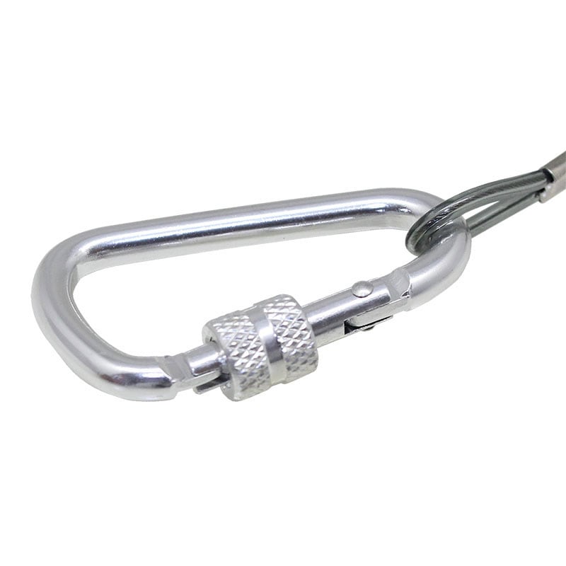 【送料無料 ネコポス便】カールコード コイルストラップ 伸びる スチールワイヤー入りタイプ ロック機能付きカラビナ 大型リング キ...