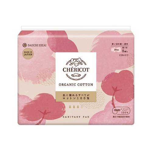 シェリコット オーガニックコットンナプキン 29cm 羽つき 8枚 【多い日の昼~夜用】