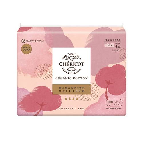 シェリコット オーガニックコットンナプキン 40cm 羽つき 6枚 【特に多い日の夜用】