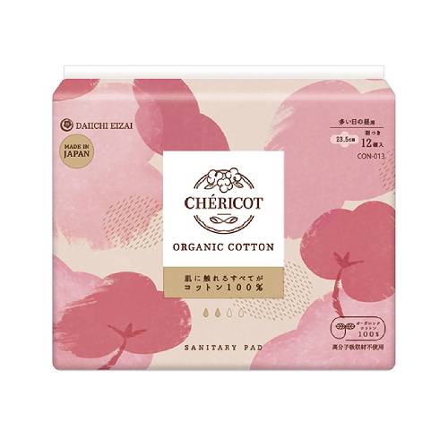 シェリコット オーガニックコットンナプキン 23.5cm 羽つき 12枚 【多い日の昼用】