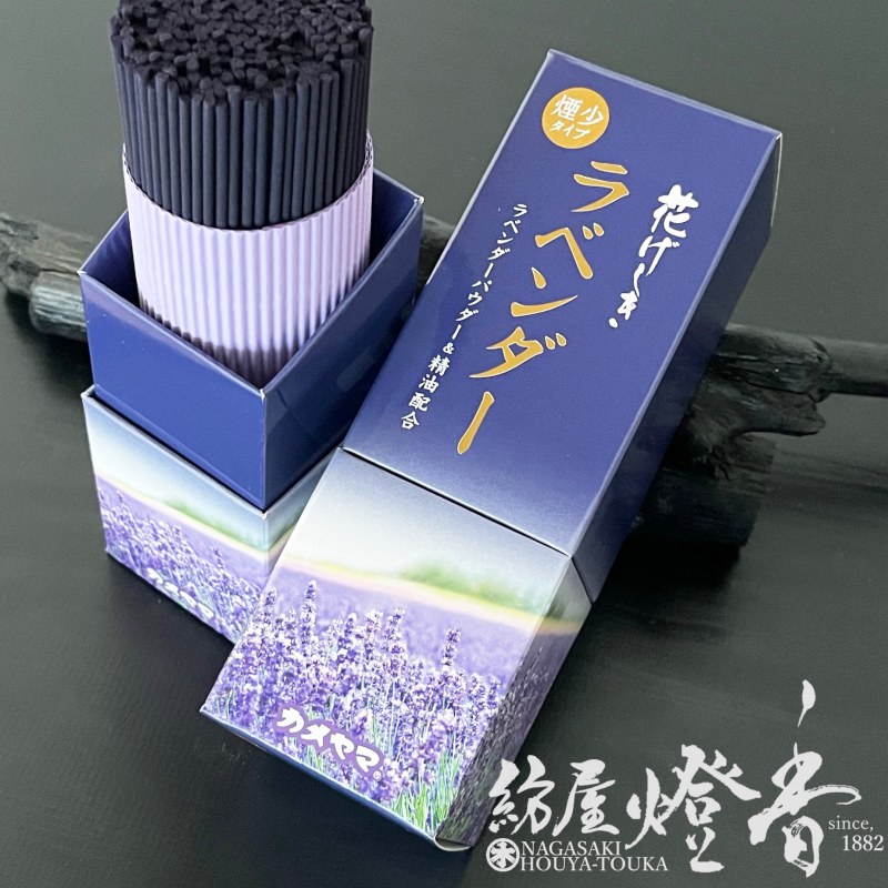 お線香『パウダー&精油配合【花げしき・ラベンダーの香り-Hanageshiki-/縦函】バラ詰紙筒箱[少煙]』カメヤマ