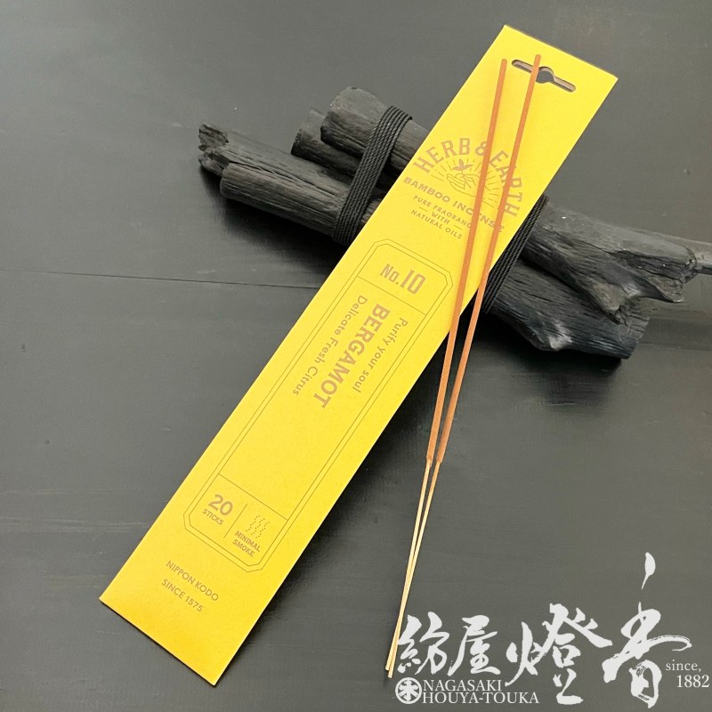 バンブーインセンス『HERB&EARTH【NO,10/ベルガモット-BERGAMOT-/20本入】竹芯スティック[少煙]』日本香堂