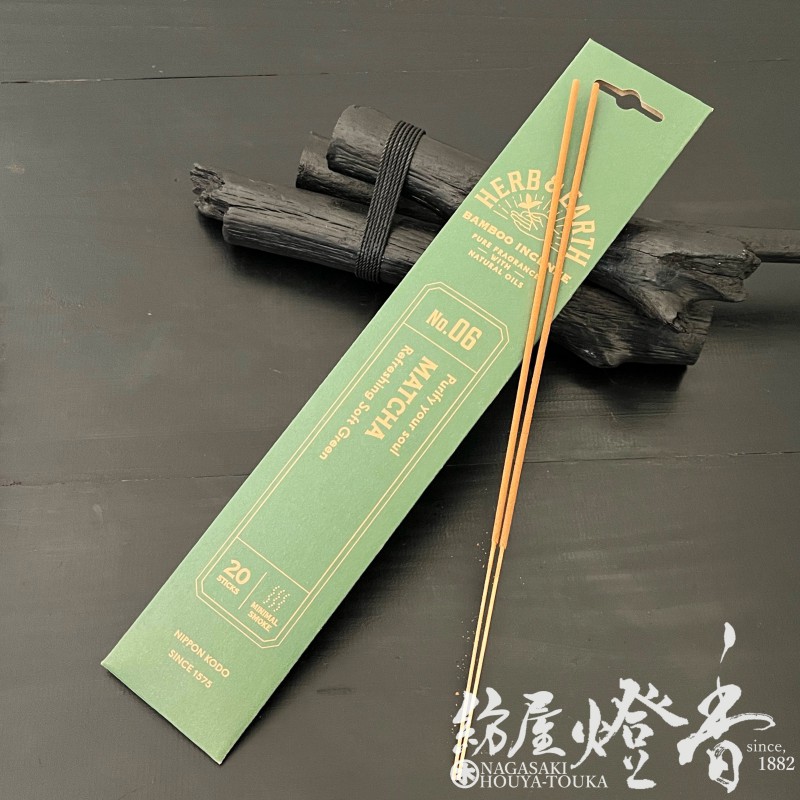 バンブーインセンス『HERB&EARTH【NO,06/抹茶-MATCHA-/20本入】竹芯スティック[少煙]』日本香堂
