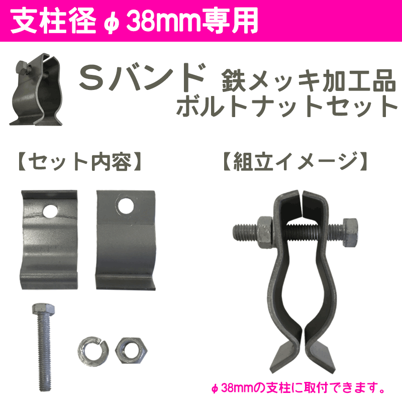 視線誘導標用取付金具 Sバンド 鉄メッキ加工品 支柱径φ38㎜専用 ボルトナットセット