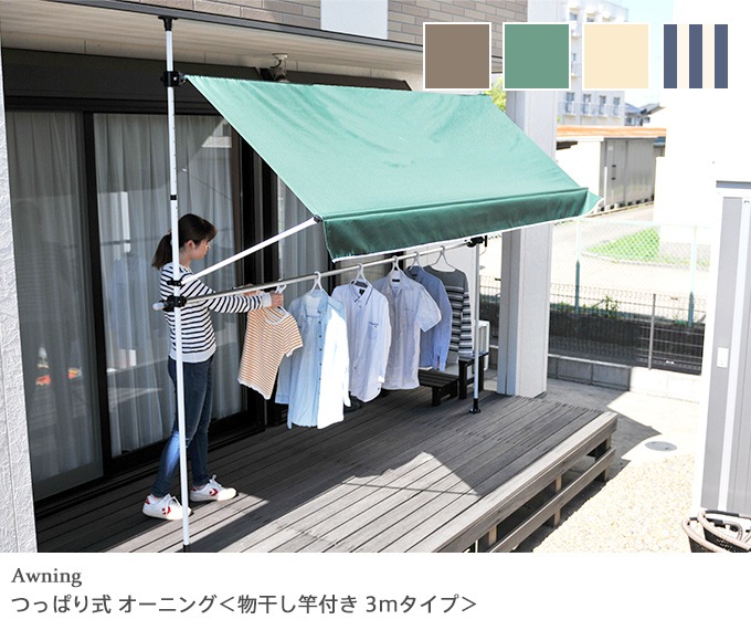 突っ張り式 日よけ 物干し竿付きオーニング(幅3mタイプ)