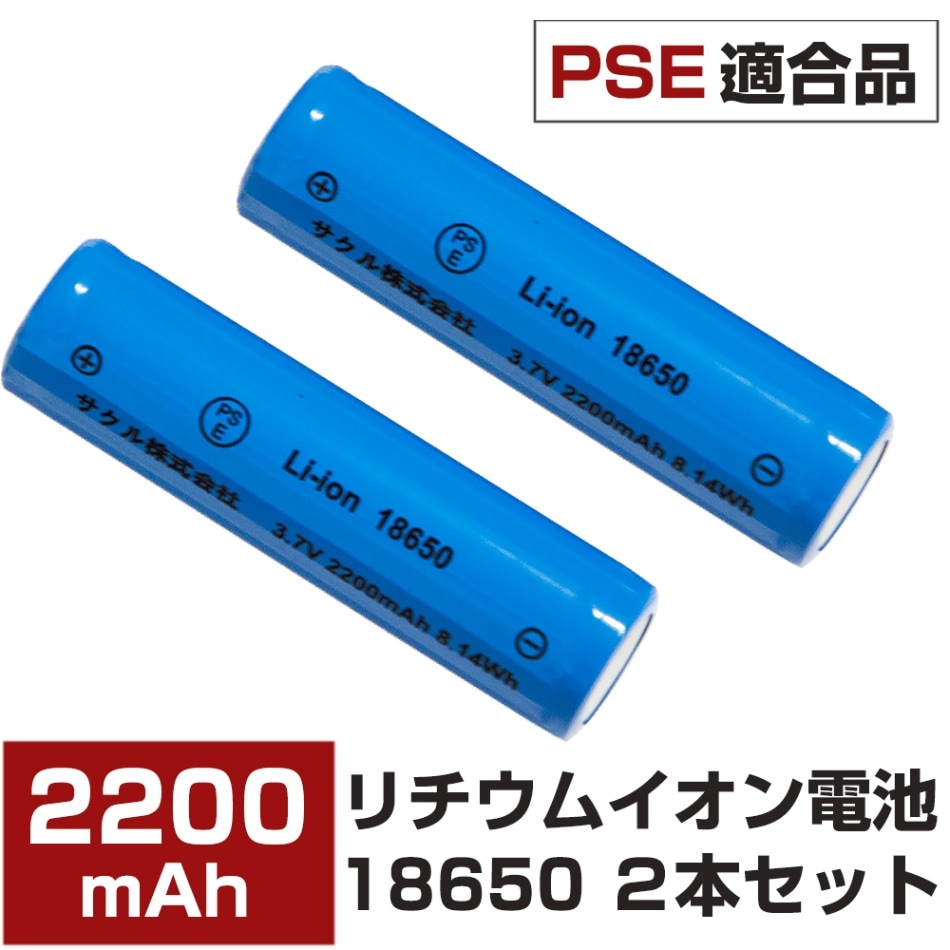 18650バッテリー2200mAh リチウム電池 リチウムイオン電池 懐中電灯 ヘッドライト用 保護回路 2本セット