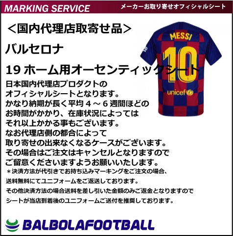 <オフィシャル>バルセロナ19ホーム用オーセンティックシート