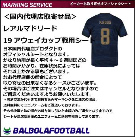 <オフィシャル>レアルマドリード19アウェイカップ戦用シート