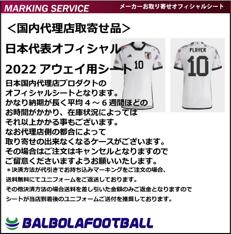 <オフィシャル>日本代表22アウェイ用シート