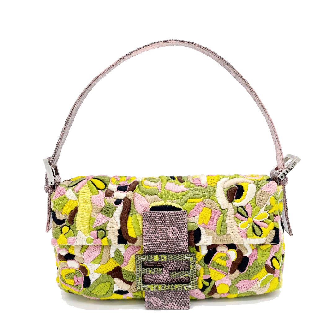 FENDI フェンディ マンマバケット ショルダーバッグ コットン刺繍 パイソン マルチカラー