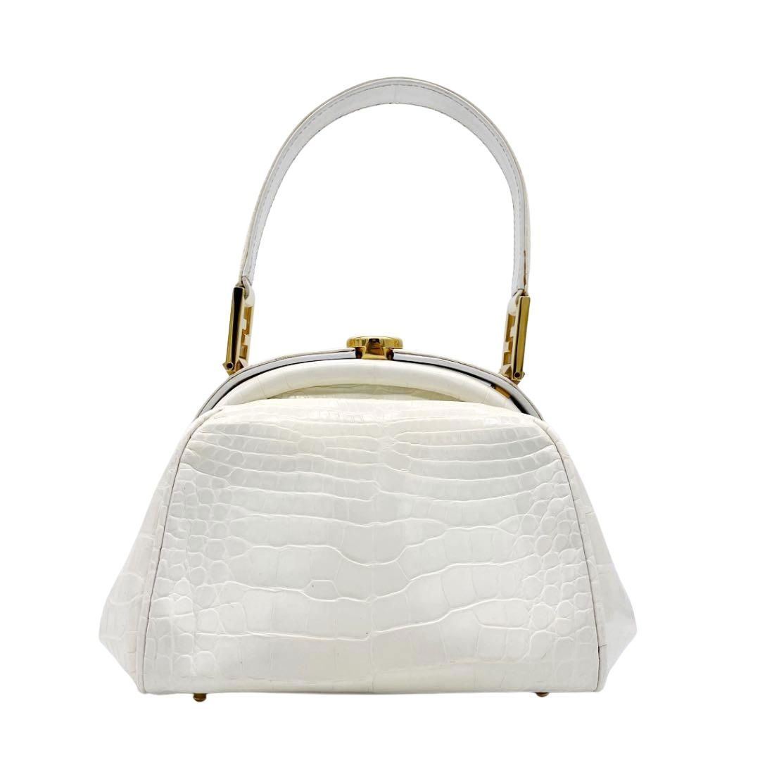 FENDI フェンディ ハンドバッグ クロコダイル ホワイト ゴールド ヴィンテージ