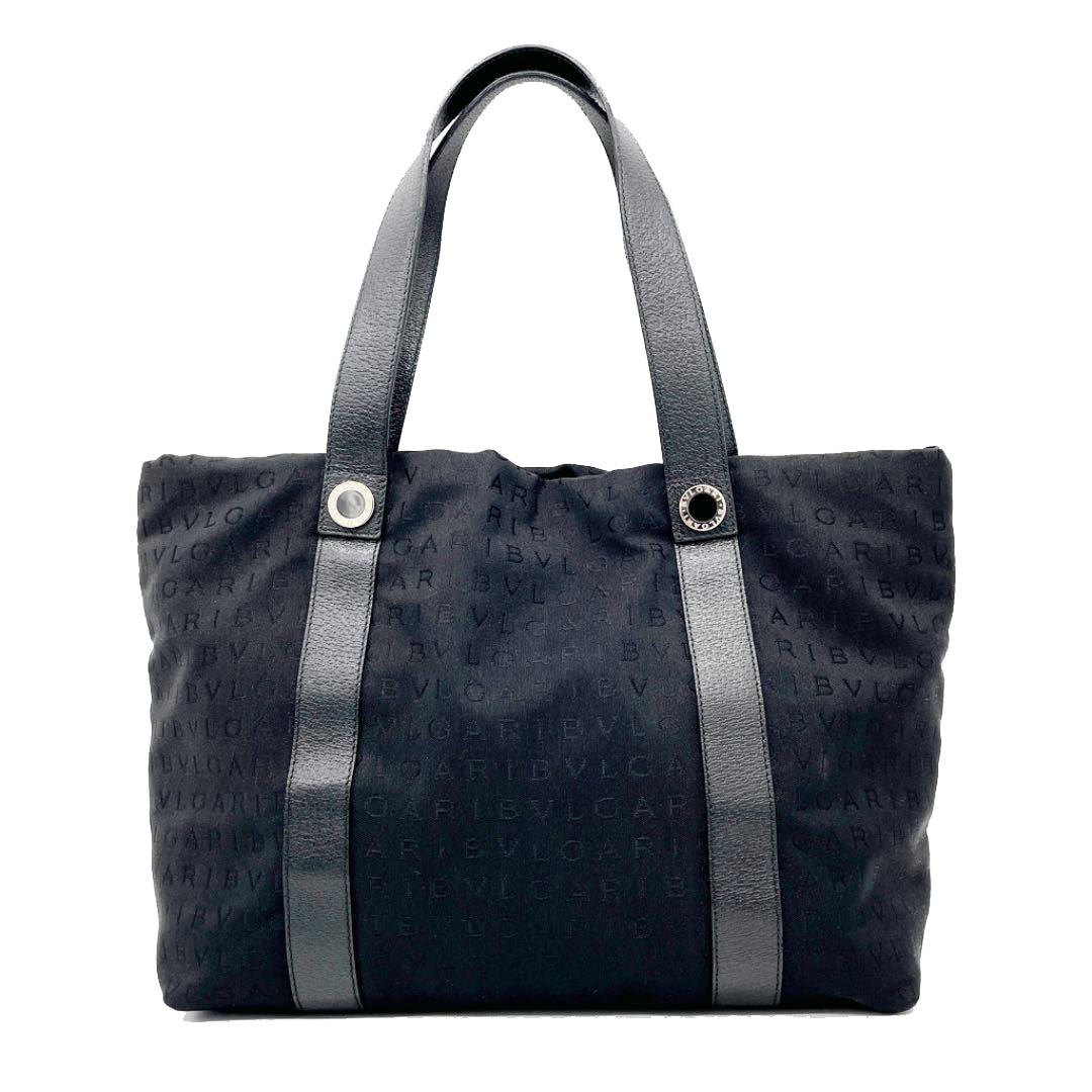 BVLGARI ブルガリ トートバッグ ロゴマニア キャンバス ブラック ポーチ付