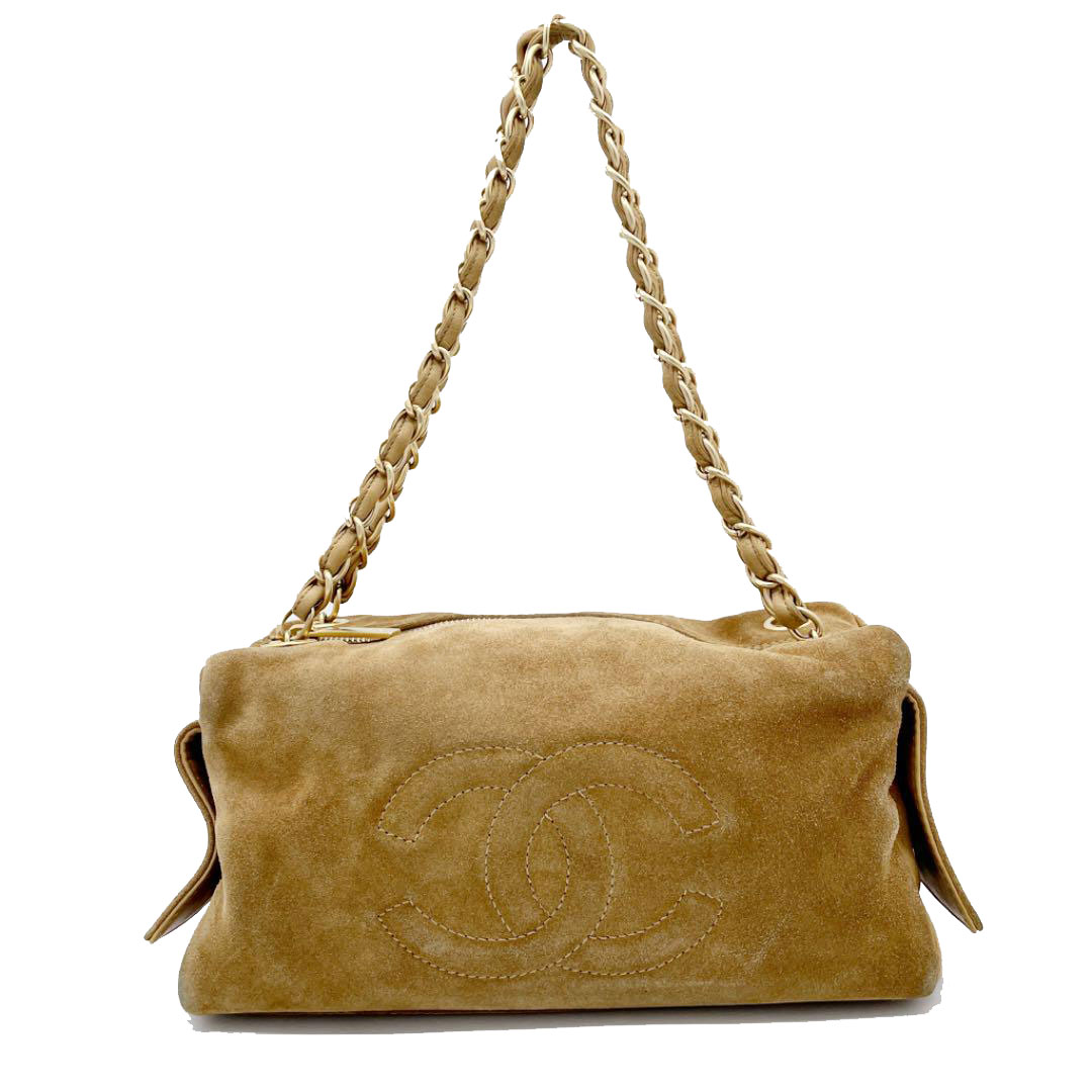 CHANEL シャネル チェーンショルダーバッグ ココマーク スエード ベージュ ゴールド金具 7番台