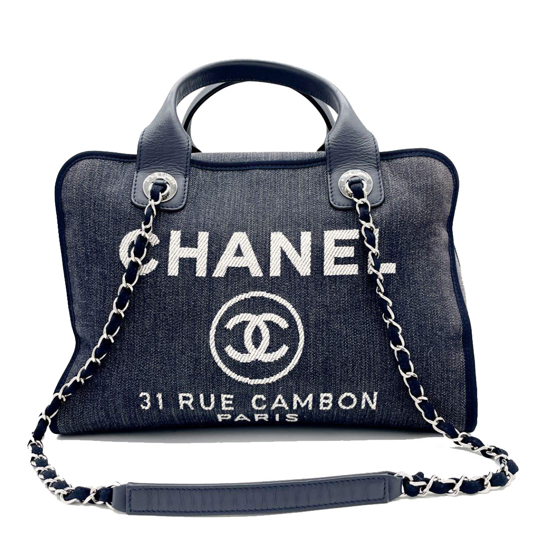 CHANEL シャネル ドーヴィル 2WAYハンドバッグ チェーンショルダー デニムキャンバス ネイビー A92750 21番台