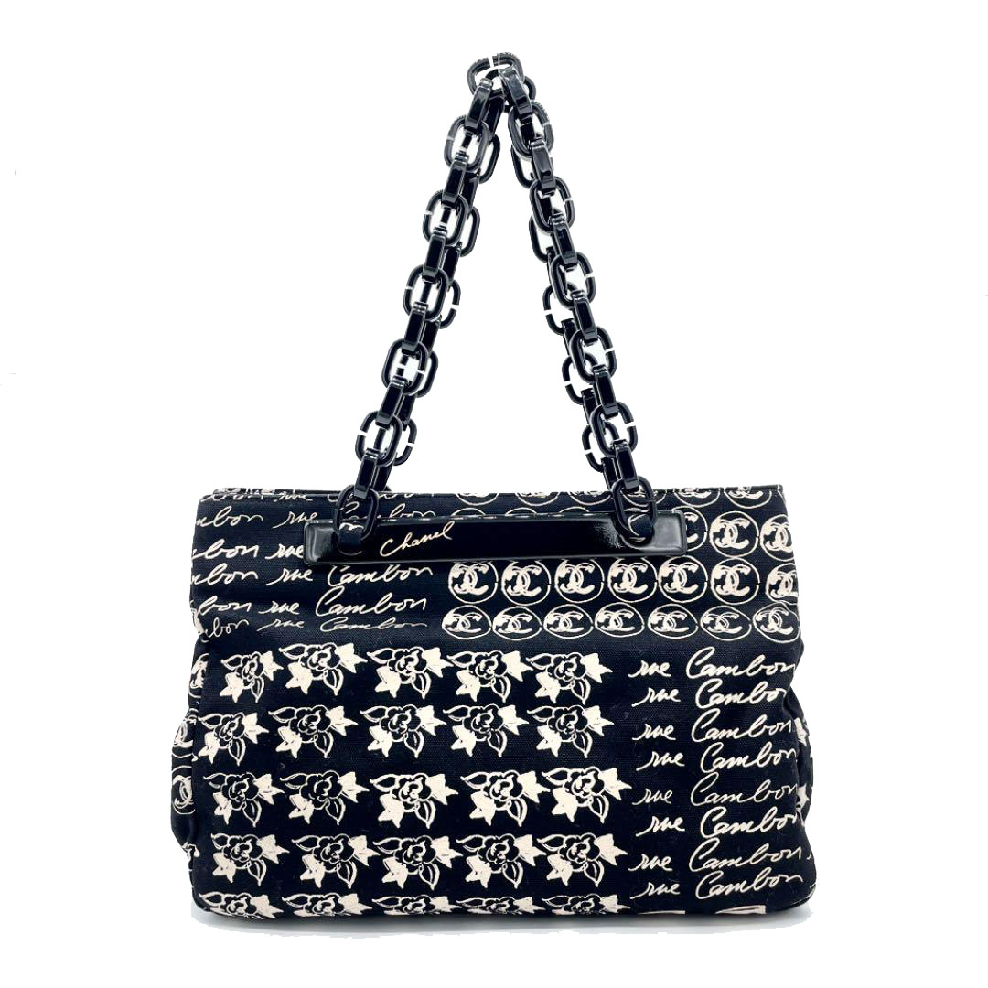 CHANEL シャネル プラチェーントートバッグ キャンバス カメリア マドモアゼル ココマーク ブラック 10番台