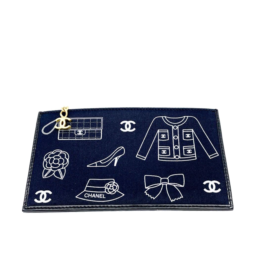 CHANEL シャネル ミニポーチ アイコンモチーフ キャンバス ブラック 7番台(2002年頃製造)