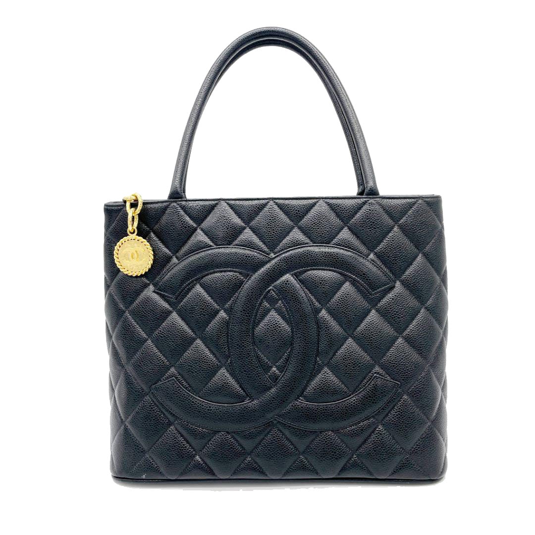 CHANEL シャネル 復刻トートバッグ キャビアスキン ブラック ゴールド金具 6番台