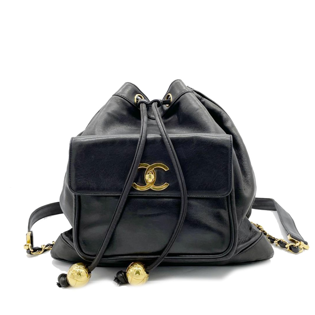 CHANEL シャネル リュックサック バックパック 巾着型 ターンロック ココマーク ラムスキン ブラック ゴールド金具