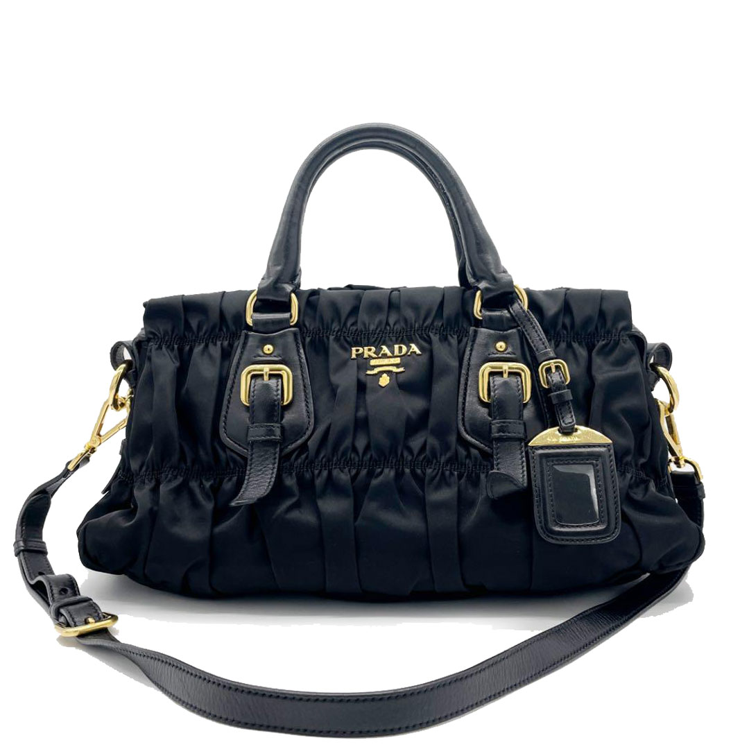 PRADA プラダ 2WAY ショルダーバッグ ナイロン レザー ブラック ゴールド金具 BN1407