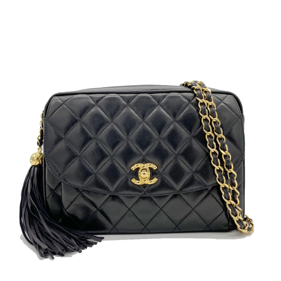 CHANEL シャネル マトラッセ チェーンショルダーバッグ タッセルチャーム ラムスキン ブラック ゴールド 2番台(1992年...