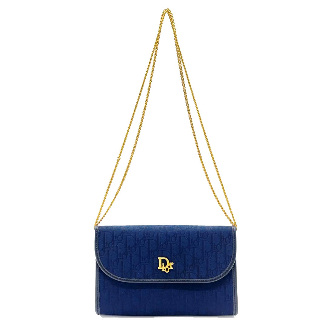 Christian Dior クリスチャンディオール ミニショルダーバッグ トロッター キャンバス レザー ネイビー ゴールド金具