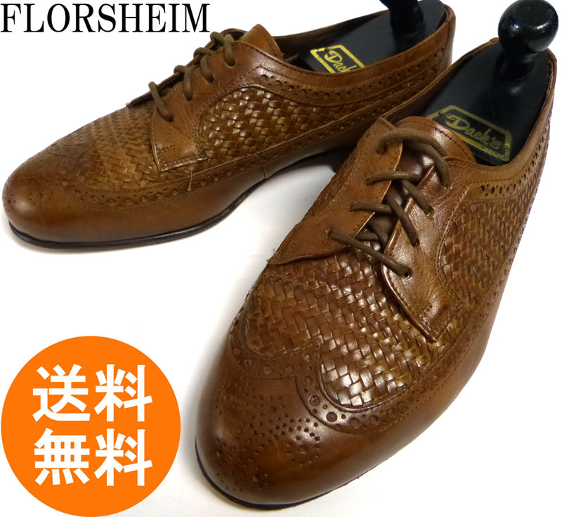 1970s フローシャイム FLORSHEIM デザイナーコレクション ウイングチップ編み込みシューズ 8 1/2EEE(27.5...