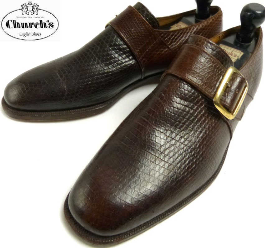 【希少】英国製 チャーチ Church\'s リザード モンクストラップシューズ 9E(27.5cm相当)(メンズ)(エキゾチック...