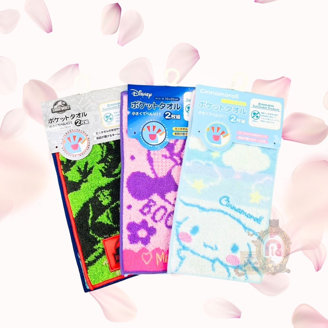 【25年入園・入学】ポケットタオル 2枚組 ジュラシック・ワールド ディズニー ミニー シナモロール