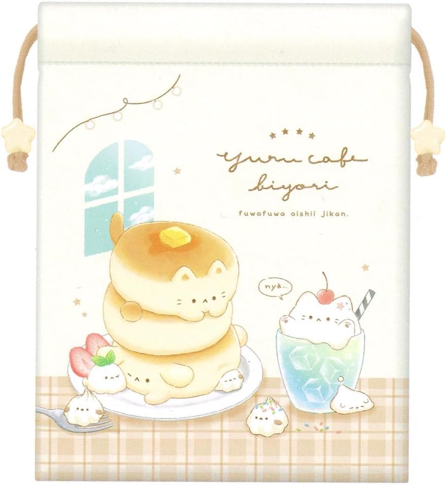 クーリア 巾着 女の子 向け ビーズ付き マチ付き 巾着 ゆるかふぇびより 猫