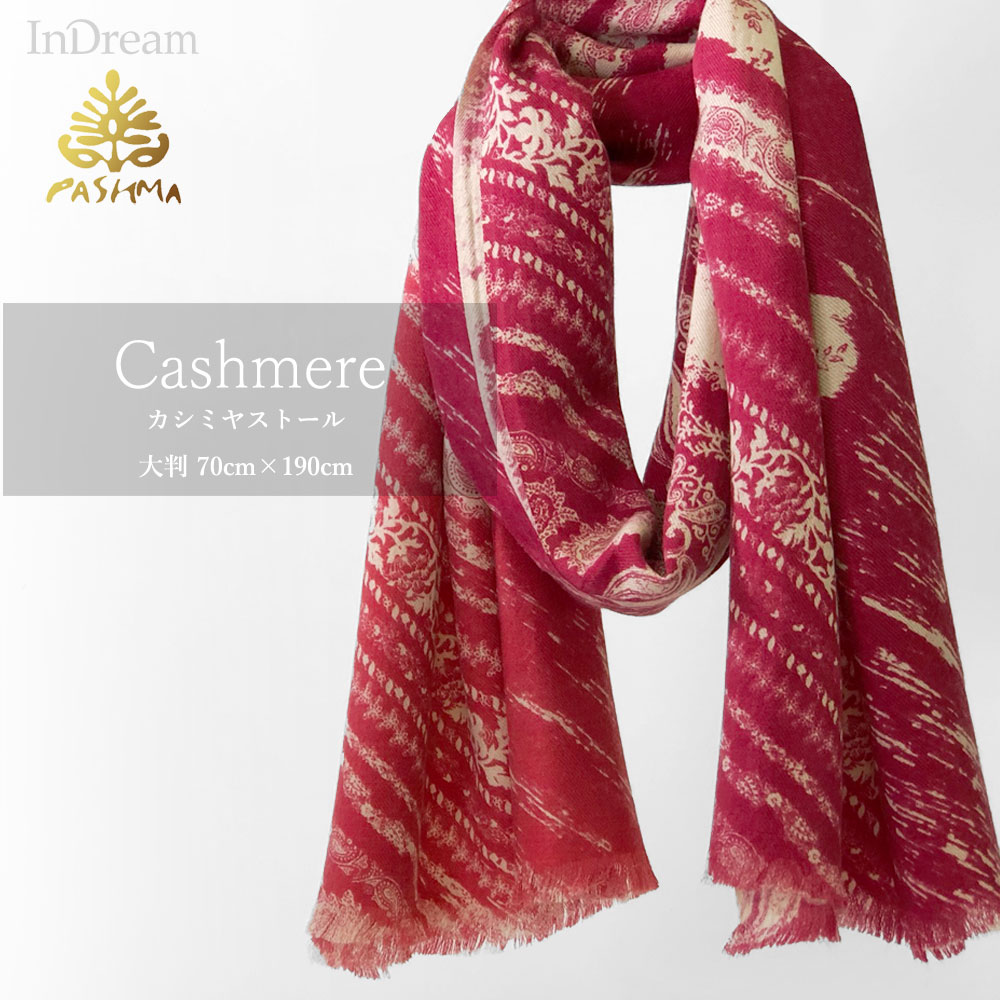 PASHMA パシュマ ストール プリント カシミヤ100% 赤&オフホワイト 還暦祝いクリスマス ギフト おしゃれ 誕生日 プレ...