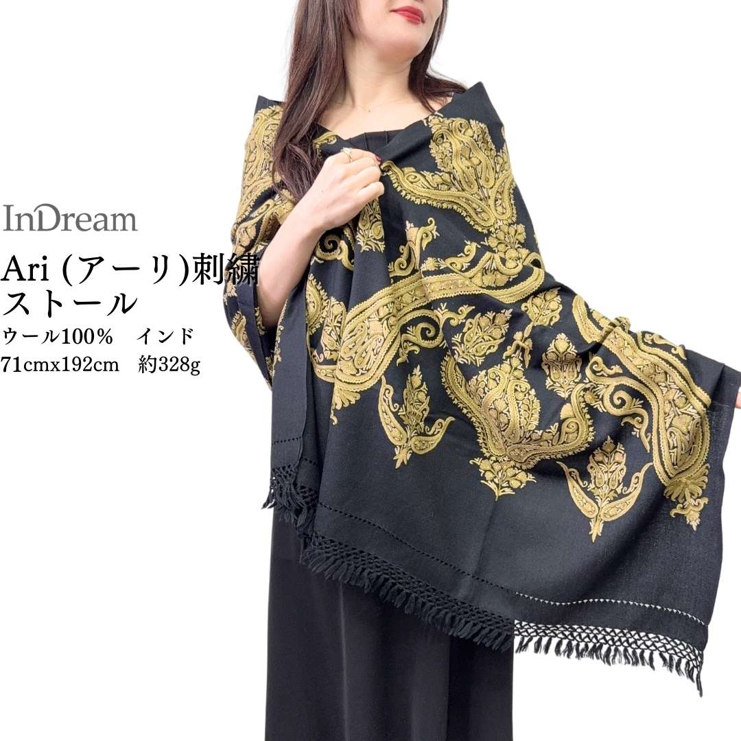 InDream アーリ刺繍ストール 黒 ブラック 08 クリスマス ギフト おしゃれ 誕生日 プレゼント 着物ショール 春 秋 冬...