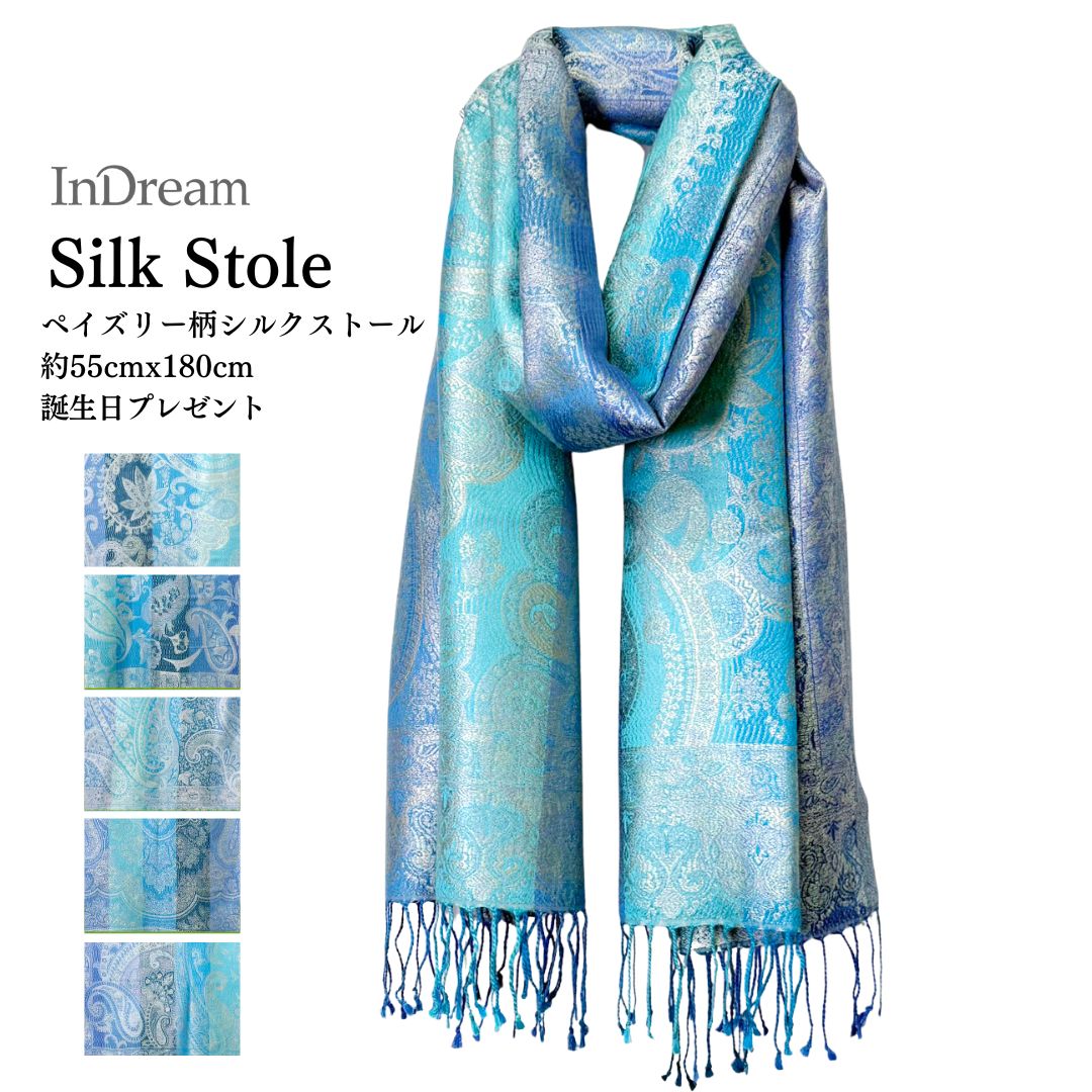 InDream ペイズリー柄 シルク ストール 大判 [70cmx200cm] ブルー ピンク パステル 春 秋 冬 誕生日 プレ...