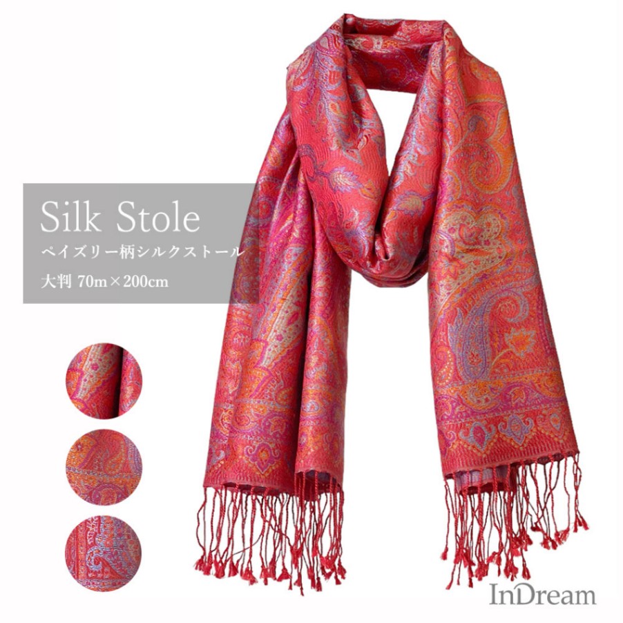 InDream ペイズリー柄 シルク ストール 大判[70cmx200cm]ピンク 春 秋 冬 誕生日 プレゼント クリスマス ギ...