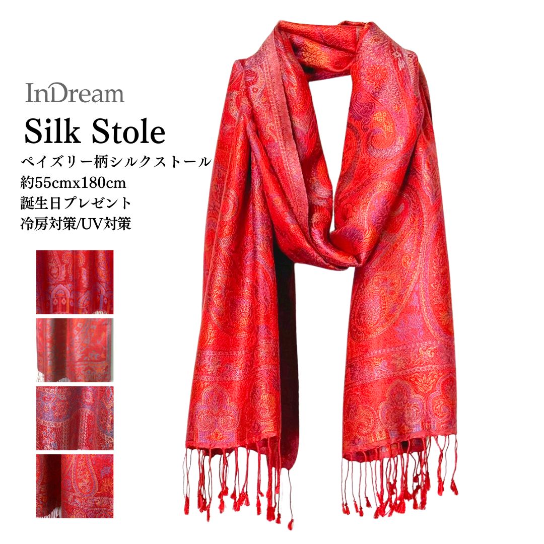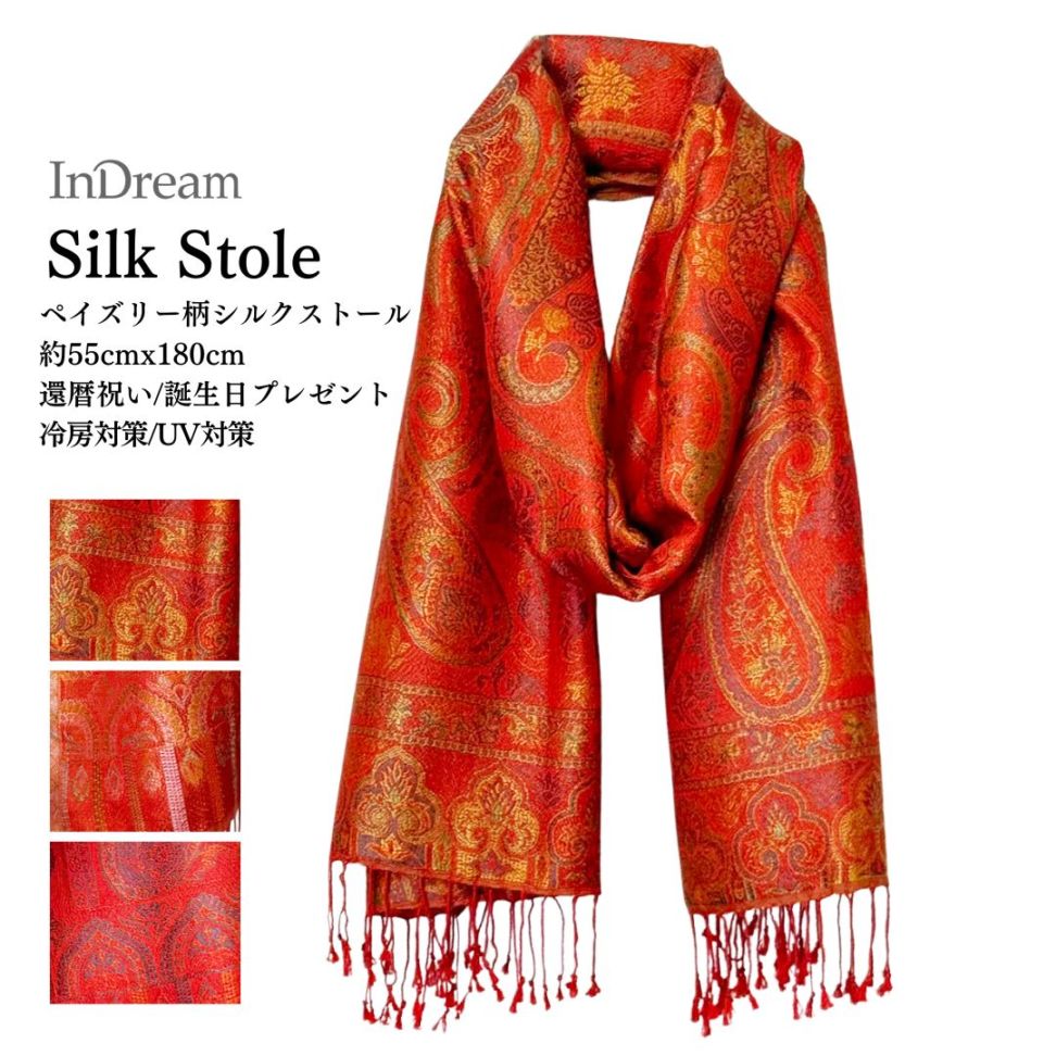 InDream ペイズリー柄 シルク ストール 中判 [55cmx180cm] 赤 レッド 還暦祝い 春 秋 冬 誕生日 プレ...