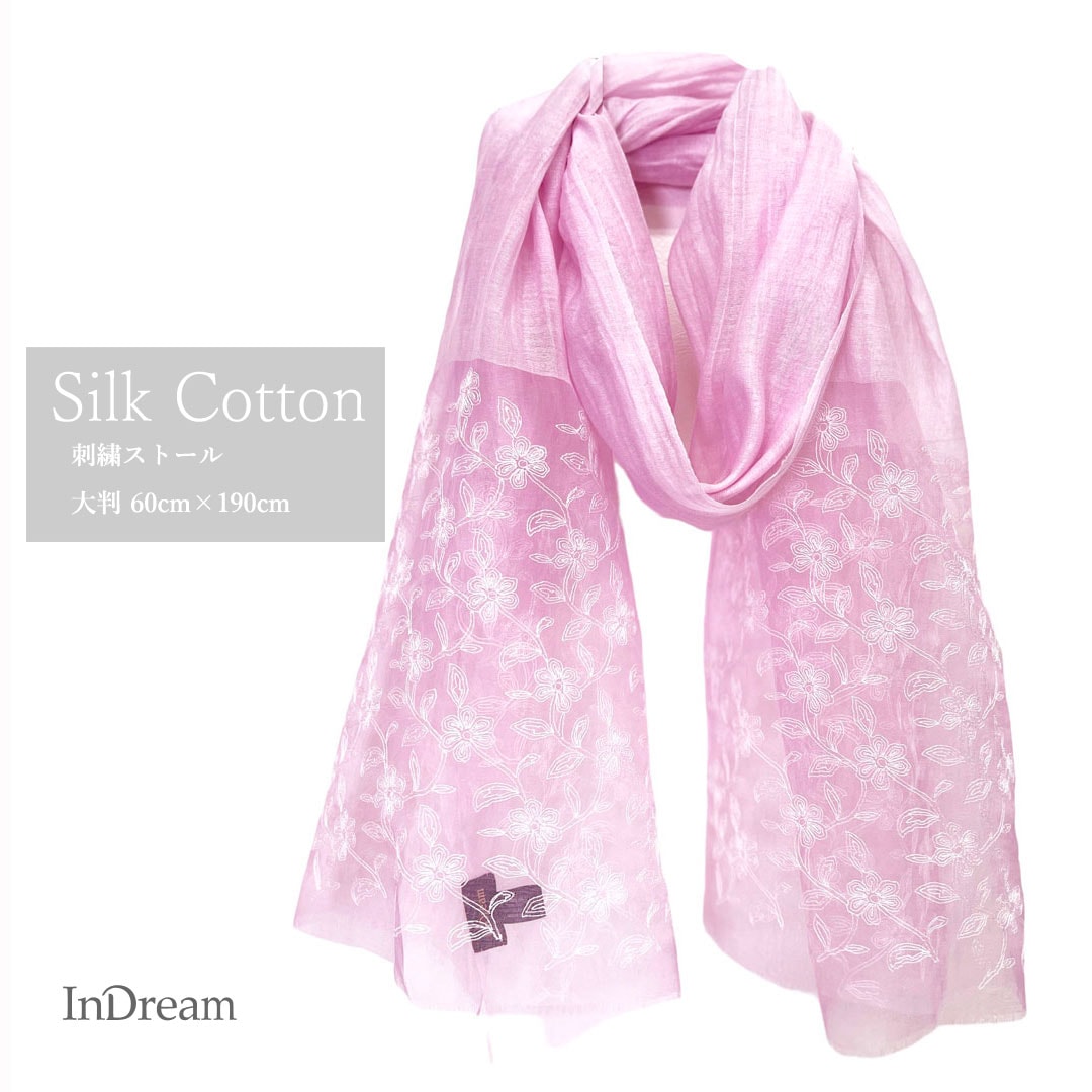 InDream シルクコットン オーガンジー ストール ピンク ラベンダー 刺繍 還暦祝い 古希祝い クリスマス ギフト おしゃれ...