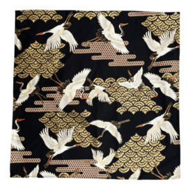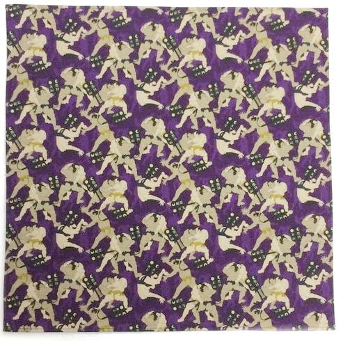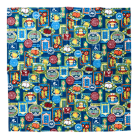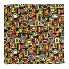 和柄バンダナ【レトロ食品ラベル柄】墨黒