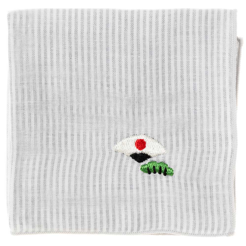 和のたしなみハンカチ 扇子(ストライプ ホワイトグレー) 刺繍入りガーゼハンカチ スーベニール Japanese pattern ...