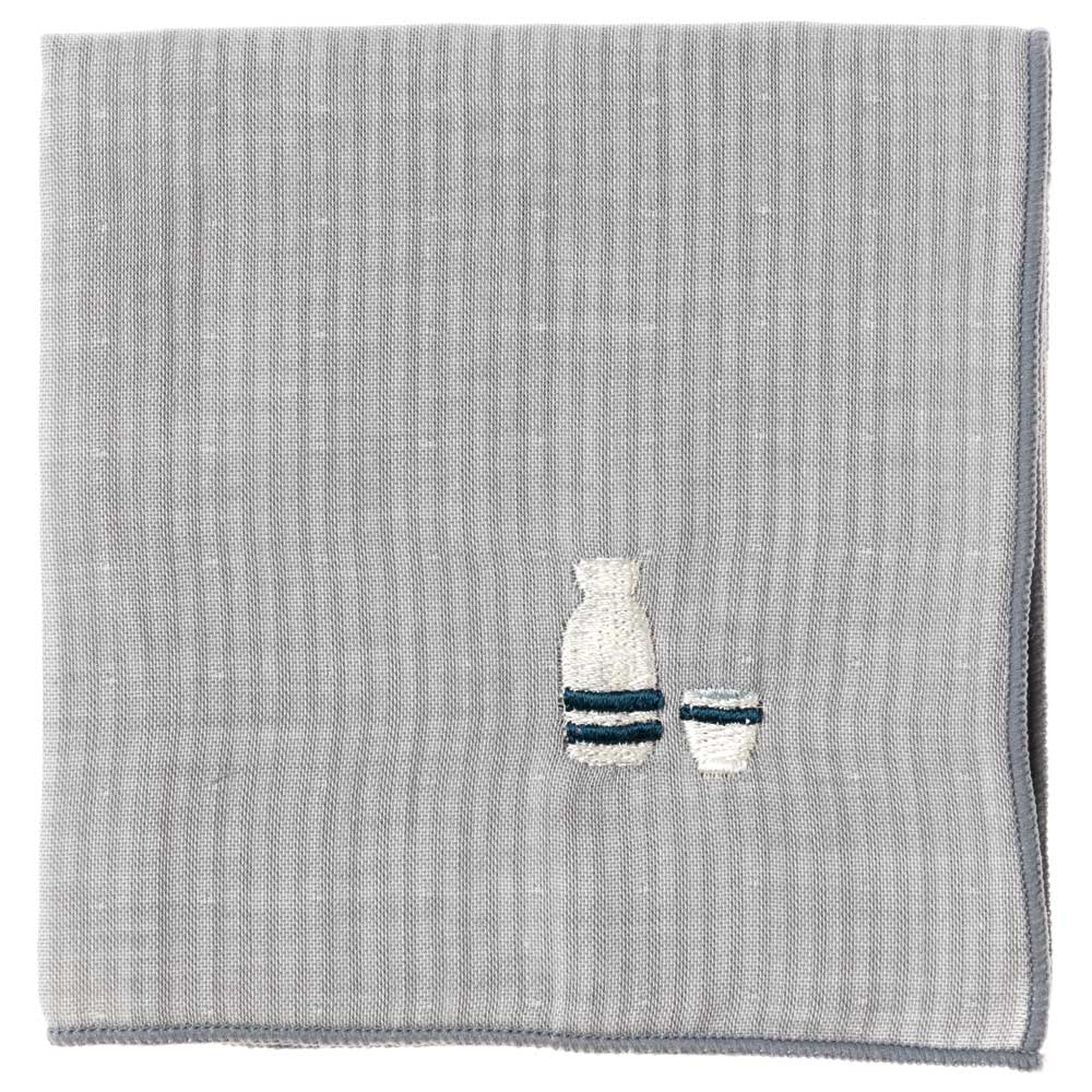 和のたしなみハンカチ 日本酒(ストライプ グレー) 刺繍入りガーゼハンカチ スーベニール Japanese pattern emb...