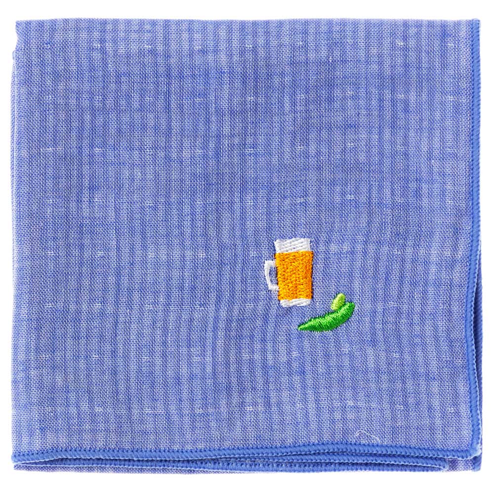 和のたしなみハンカチ ビールと枝豆(ストライプ ブルー) 刺繍入りガーゼハンカチ スーベニール Japanese pattern ...