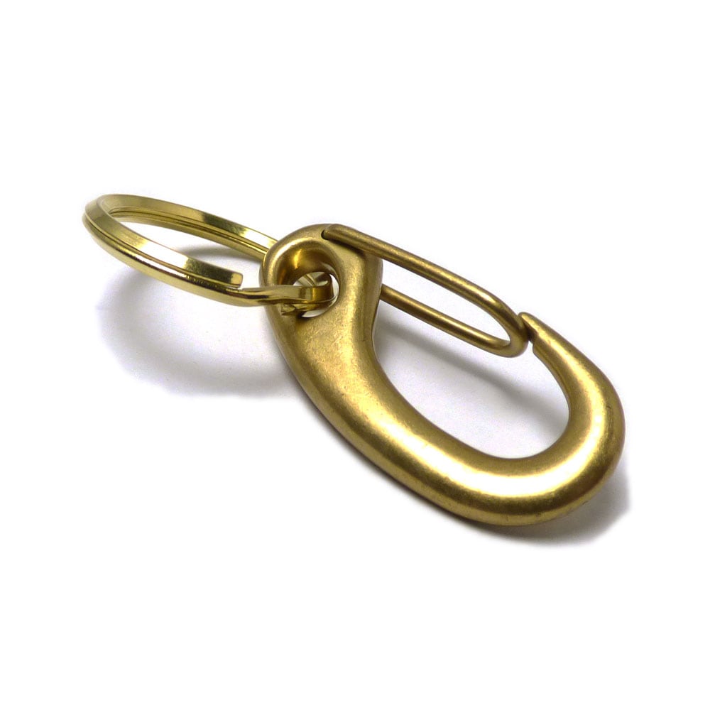 48mmクローシェイプ(勾玉) ブラスカラー仕上げ 30mmダブルリング(二重カン付き)キーホルダー/ ナスカン /キーリング
