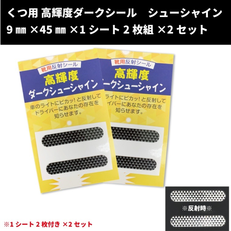 靴に貼り付ける 高輝度反射ダークシール シューシャイン 9mm×45mm×1シート2枚組×2セット