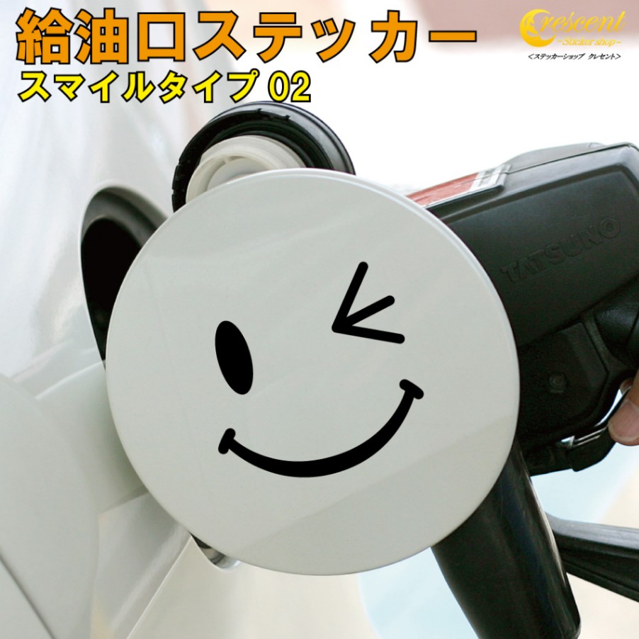 給油口ステッカー フューエルステッカー スマイル02 全26色 【車 カー 笑顔 smile シール デカール fuel】