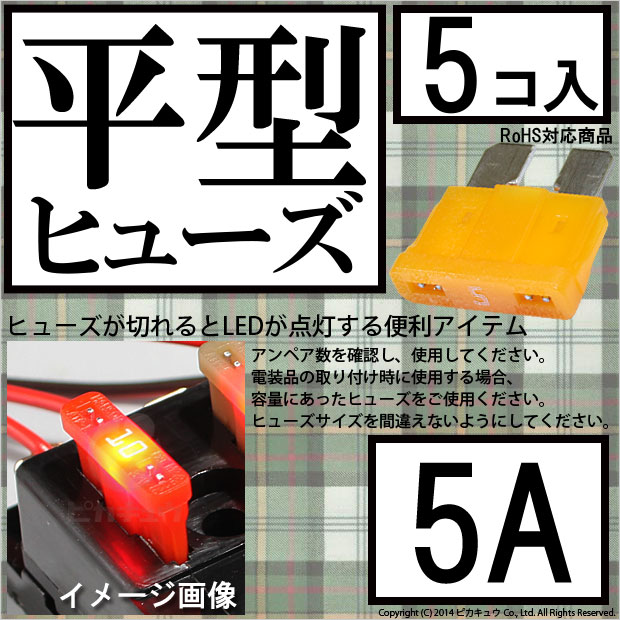 【即納】【メール便可】インテリジェントヒューズ 低背ヒューズ 5A 入数5個 切れたら光ってお知らせ