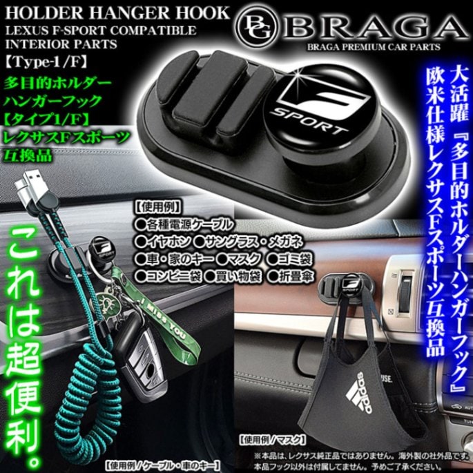 《NX/RX/LX 》多目的ホルダーハンガーフック/レクサスFスポーツ エンブレム付/客注品[タイプ1/F]ケーブル マスク 鍵 ...