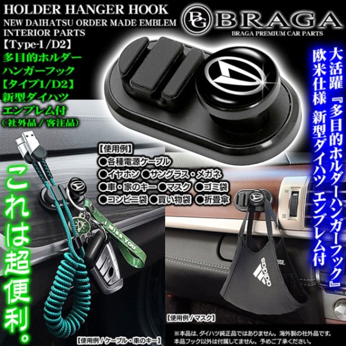 ミラ/ムーブ/ブーン/ハイゼット/多目的ホルダーハンガーフック/新型ダイハツDマーク エンブレム付/客注品【タイプ1/D2】ケーブ...