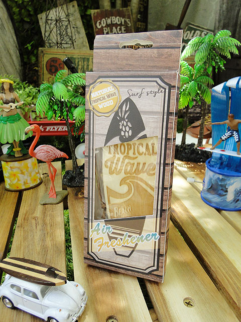 サーフボード型ナチュラルウッドエアーフレッシュナー (トロピカルウェーブ)