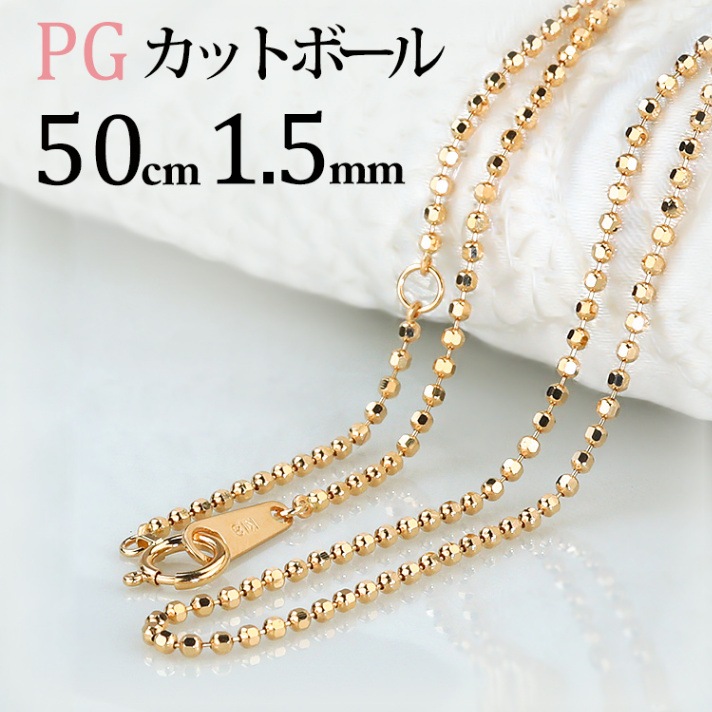 K18PG カットボールチェーン(50cm 幅1.5mm)
