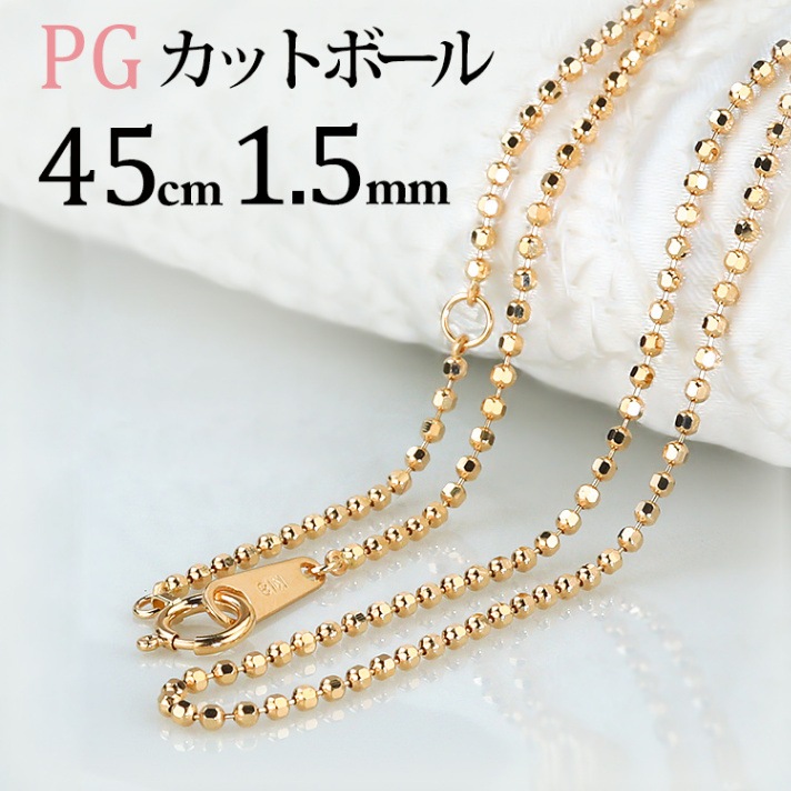 K18PG カットボールチェーン(45cm 幅1.5mm)