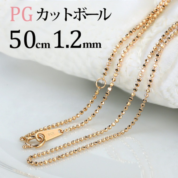 K18PG カットボールチェーン(50cm 幅1.2mm)