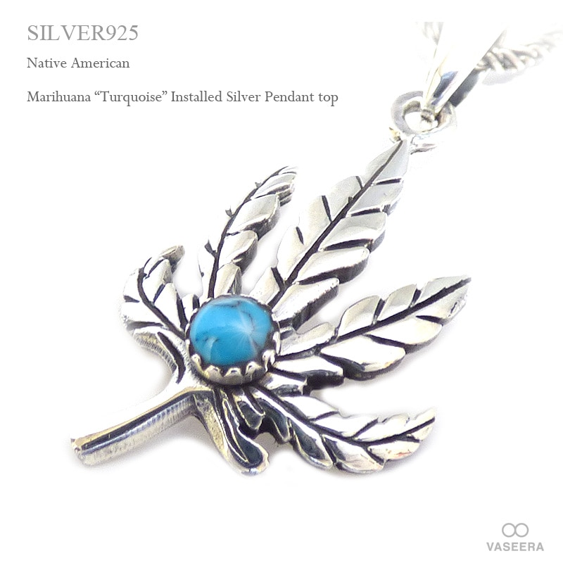 ネイティブアメリカン ターコイズ(トルコ石)埋め込み 立体マリファナ シルバー ペンダント トップ 【シルバー925/SILVER...